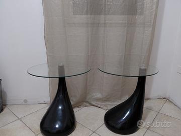 coppia di tavolino in vetro usati ma ben conservati con gambo in vetroresina... simpatici come comodini o separatamente come tavolino d'appoggio. Ritiro a carico dell'acquirente.