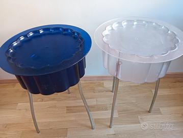tavolini con contenitore, diametro 40 cm, altezza 60 cm. prezzo unitario 10 euro, entrambi 15 euro