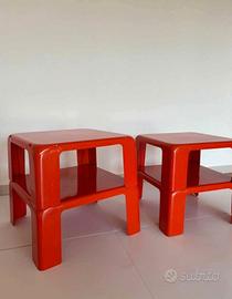 Tavolini Vintage opera "4 Gatti" di Mario Bellini anni 60, in ottime condizioni, colore arancio, completa di 4 tavolini