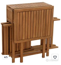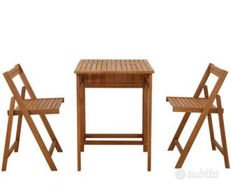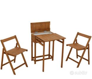 Composizione: Include un tavolino pieghevole e due sedie pieghevoli coordinatate. Contenitore Integrato: Il tavolo dispone di un pratico vano contenitore superiore utile per riporre piccoli oggetti o accessori da giardino. Design Salvaspazio: Entrambe le sedie possono essere ripiegate e riposte direttamente sul retro della struttura del tavolo quando non in uso. Articolo praticamente mai utilizzato riposto con cura all'interno ma fa utilizzarsi sia all'esterno che all'interno. Vendo per cambio progetto. Ritiro a mano su Roma possibiltà di spedizione