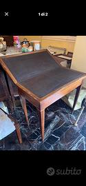 Bel tavolino lastronato apribile a libro con rivestimento in cuoio internamente, utilizzabile in vari modi, ma anche come tavolino da gioco 80 × 80 cm aperto 80 × 40 cm chiuso condizioni come da fotografia