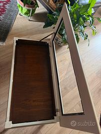 vendo tavolino a ribalta da salotto con vetro rotto in buono stato colore beige chiaro verniciato misure 50x97x47