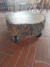 Tavolino con rotelle in legno naturale trattato a cera. Dotato di 3 rotelle girevoli . in ottimo stato.