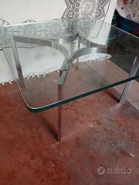 tavolino acciaio e cristallo