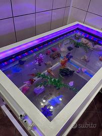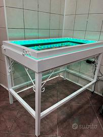 Tavolino in ferro, artigianale con motore e allestimento, decorazioni e misure a piacere dell’acquirente.