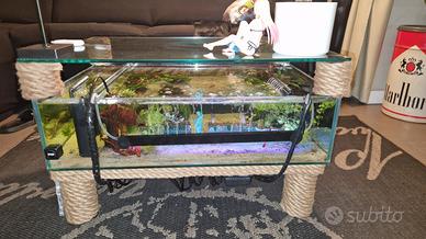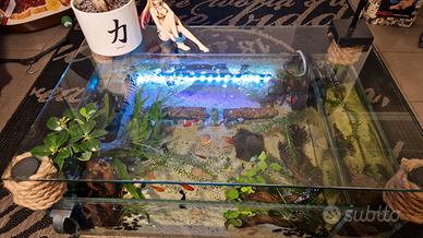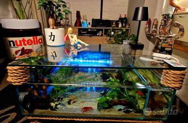 tavolino acquario, si realizza della misura desiderata, quello in foto e un 70x50x44h tutto completo sabbia piante vere filtri luci riscaldatori (no pesci, quelli a vostra scelta)