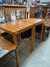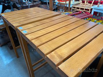 Due tavolini alti da bar, in legno chiaro. Molto robusti. Misure 75x75, alto 106cm.