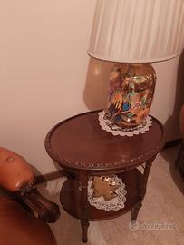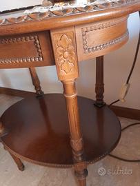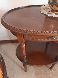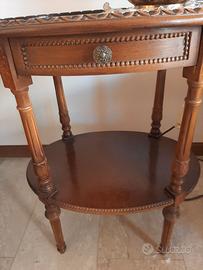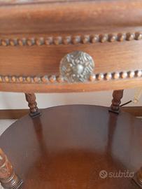 Tavolino alto vintage in noce, forma ovale, decorato, molto elegante. Con cassettino e doppio ripiano, forma leggiadra. Misure tavolino 55x40, altezza 63. Perfetto. Prezzo 160 euro. Non spedisco, visibile e ritirabile a Milano città. Astenersi perditempo.
