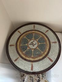 Tavolino effetto legno in ferro battuto con mosaico ricoperto la vetro. Mosaico fatto a mano in cemento. Perfetto sia per interno che esterno. Ritiro presso domicilio Pagamento in contanti