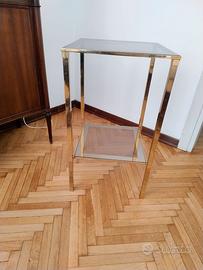 Tavolino in ottone quadrato (40x40) altezza 70 cm con due ripiani in vetro fumé e cornice a specchio come in foto vendo a 50 euro