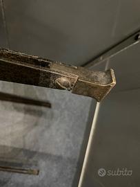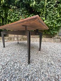 Bellissimo tavolino anni 50 con struttura in ferro verniciato, piedini e viti a vista in ottone e piano in palissandro.