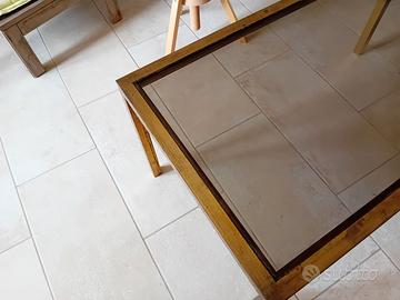 Tavolino anni '70 in ottone con vetro fumé.
