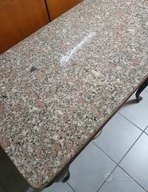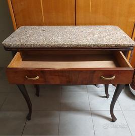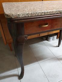 Tavolino antico con cassetto capiente, arricchito da queste due particolari maniglie e in più questo piano in marmo dai bordi arrotondati fatto fare apposta
