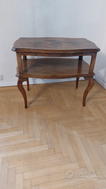 Antico tavolino da salotto in legno stile Luigi XV con due piani sagomati gambe mosse. Misure 90x50 h70. Tel 3207265836