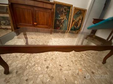 tavolino antico da salotto in noce con ripiano in cristallo misure 140x64x38