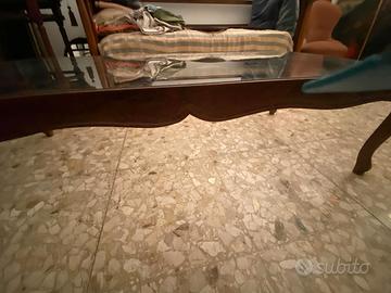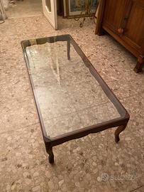 tavolino antico da salotto in noce, ripiano in cristallo misure 120x 64x38