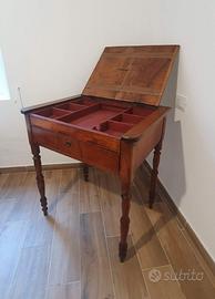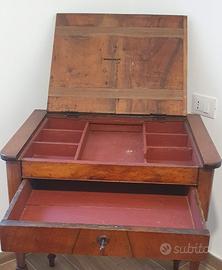 Tavolino portagioie interamente in legno. Antico e con segni di usura ma in buono stato e con tutte le parti funzionanti. dimensioni sono : larghezza 64, profondità 48.4 e altezza 73 cm