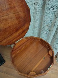 Tavolino antico intarsiato,diametro cm 47,5,altezza cm 56