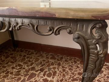 Tavolino antiquariato con piano in onice verde e bordeaux L 82 cm P 51 cm H 50 cm Solo ritiro zona Savena