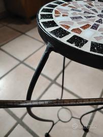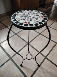 Tavolino d arredo con base mosaica e base vaso, per piante e fiori.