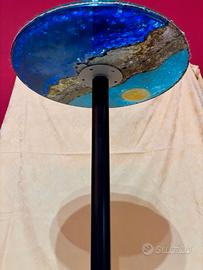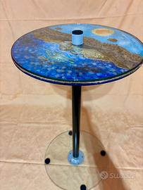 TAVOLINO TONDO ARTIGIANALE IN DOPPIO VETRO TONDO DECORATO CON ACRILICO MUSCHIO E FOGLIA ORO MISURE 30X30 ALTEZZA CIRCA 60 CM DECORART