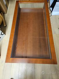 Tavolino bacheca in ciliegio con anta in cristallo a ribalta apribile dimensioni cm 109x60.