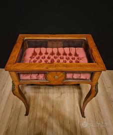 Raffinato tavolino a bacheca francese, appartenente allepoca Napoleone III,