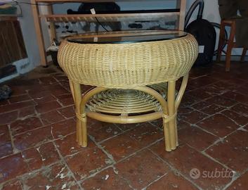 tavolo bamboo diametro 60 altezza 50 ottimo stato con base di vetro sopra come da immagini