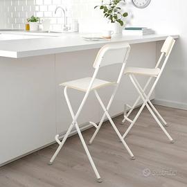 Un tavolino bar quadrato e due Ikea FRANKLIN Sgabello da bar con schienale, pieghevole, 63 cm, bianco/bianco.