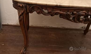 Tavolino barocco con piano in marmo, gambe in legno intarsiato Misure: 100x54x47 Ritiro a mano Egna e limitrofi previ accordi