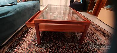 vendo tavolino Calligaris 125x65x40 in legno massello ciliegio con ripiani a cassetti scorrevoli e vetro cristallo, piedini con bordo alluminio 500€ trattabili.