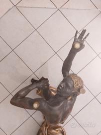 Tavolino basso con due mori, Firenze, metà XX secolo. Piano in cristallo sorretto da due sculture di mori veneziani finemente scolpite, laccate e dorate. misure vedi foto. unico difetto manca un pollice e un alluce. prezzo trattabile