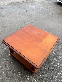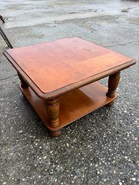 Tavolino basso da salotto in legno, dal look naturale e versatile. La superficie mostra alcune piccole macchioline, che non ne compromettono stabilità e funzionalità. Perfetto come punto d’appoggio per libri, bevande o oggetti decorativi.