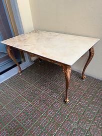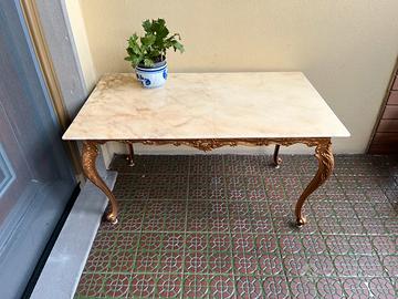 Tavolino anni 70 , base in ottone lavorato ( può essere riverniciato di un altro colore se non piace) e base in bellissimo marmo rosa del Portogallo, misura cm 75x45 alto cm 40 RITIRO A LUCCA FUORI DALLE MURA