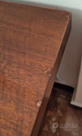 Tavolino basso da salotto in legno. Massiccio. Misura cm 80x80 ed é alto cm 46,5. Ottime condizioni tranne che per qualche difetto su uno spigolo (vedi ultima immagine) che non sono così vistosi come potrebbe sembrare in foto. Non spedisco.