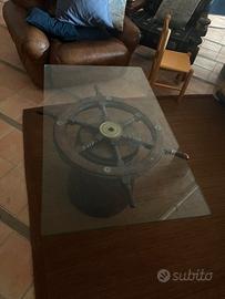 Tavolino basso in vetro doppio con base timone e scomparto misure 100 x 60