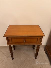 Tavolino basso in legno massello. Presenta un cassetto centrale con pomello e gambe tornite. Non presenta nessun difetto, è in condizioni ottime.