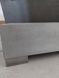 Tavolino basso da salotto 90x60x18. Nobilitato, grigio cemento con piedi in acciaio inox.