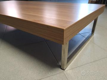 Tavolino basso di design, in legno con base in metallo, in perfette condizioni. largh. 123 cm, lungh. 58 cm, alt. 23 cm