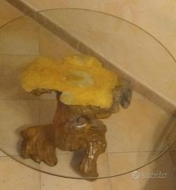 Vendo come da foto causa trasloco tavolino basso montato su base di radice albero, diametro vetro 70 cm altezza 53 cm.