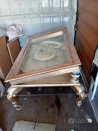 tavolino vintage basso apribile in cristallo