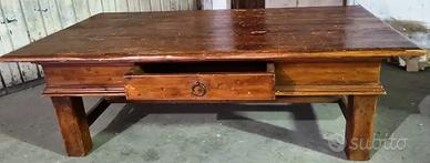 TAVOLINO BASSO IN ABETE ANTICATO DA CENTRO DIVANO Largh. 78 cm Lungh. 140 cm Alt. 45 cm