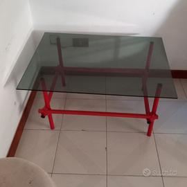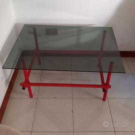 tavolino basso color rosso con struttura in alluminio e base in vetro ottimo per negozi sale d'attesa uffici b&b misure: P 60 L 80 H 40 Prezzo euro 15