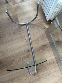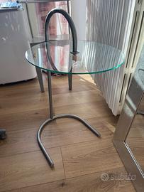 Splendido Tavolino IKEA RY, laterale. E’ stato progettato da Tord Björklund negli anni '80. Iconico modello, diventato un cult grazie alla sua somiglianza con il celebre tavolo E-1027 di Eileen Gray. Struttura in acciaio tubolare e piano circolare in vetro temperato. Ottime condizioni.
