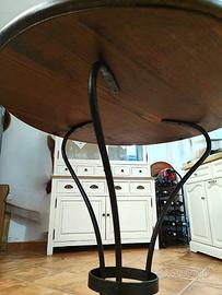 Vendo tavolino "bistrot" antico tondo, piedi in ferro battuto e base in legno di castagno, tenuto bene, le condizioni sono ottime, diametro e altezza cm.76,