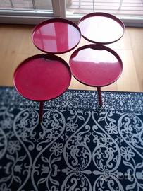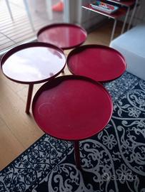 Tavolino Bolle di Living Divani, design di Nathan Yong del 2009, è un tavolino basso composto da 4 piani cilindrici in acciaio saldati fra di loro. Le gambe in tubulare di acciaio sostengono i piani cilindrici di ø30cm e sono saldati agli stessi. Il tavolino è verniciato a polvere epossidica nel colore RAL-K7 9010 bordeaux