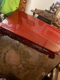 Questo oggetto è un Sập Ngũ Phúc, un tradizionale tavolino basso vietnamita in legno di gụ, spesso utilizzato come base per espositori bonsai o statue, molto bello, qualche segno visibile sul piano, ma molto molto bello.