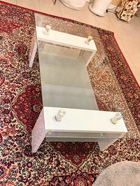 Tavolino caffè/sala vetro e legno bianco moderno