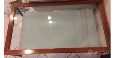 Tavolino rettangolare firmato Calligaris. Doppio piano in vetro lucido e opaco, cornice in legno.