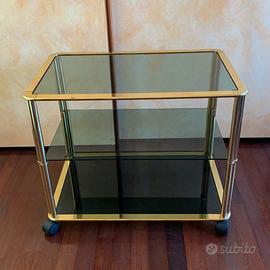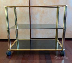 TAVOLINO/CARELLO PORTA TV Ottone e vetro